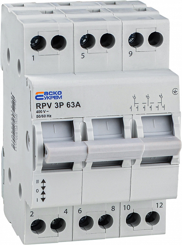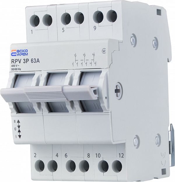 Ручний перемикач вводу (І-0-ІІ) RPV 3P 63A АСКО