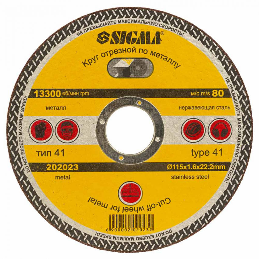 Круг відрізний по металу Ø115×1.6×22.2мм SIGMA (1941231) призначений для різання виробів з металу, роботи з кузовний сталлю і іншими аналогічними матеріалами.