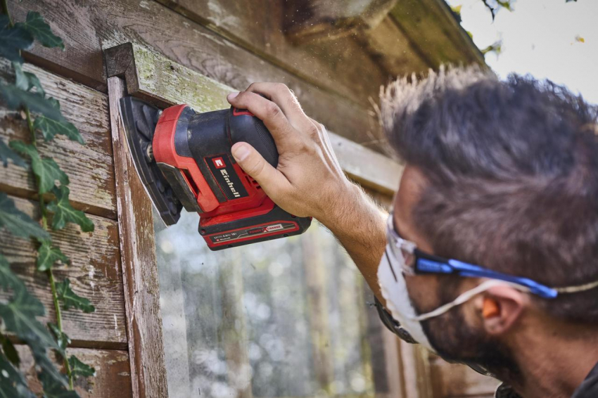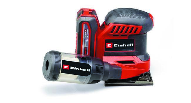 Акумуляторна шліфувальна машина Einhell TE-OS 18/113 3X Li - Solo — це компактний, потужний представник сімейства Power X-Change. Шліфмашина є пристроєм сімейства Einhell Power X-Change. Акумулятор і зарядний пристрій Power X-Change можуть використовуватися для всіх пристроїв сімейства Power X-Change. Завдяки коливальному контуру 1,8 мм потужна акумуляторна шліфувальна машинка ідеально підходить для шліфування плоских поверхонь з дерева та деревних матеріалів і, наприклад, миттєво стирає фарбу чи лак. Шліфмашина поставляється з уже встановленою шліфувальною пластиною (101 x 113 мм). Вона має систему знімних пластин, і також поставляється з подовженою пластиною (80 x 130 мм) і дельта-шліфувальною пластиною (150 x 150 x 100 мм), а також викруткою для заміни пластин. Всього в комплект поставки також входить 3 наждачних папери (P120), тобто один наждачний папір на пластину. Наждачний папір можна швидко замінити за допомогою кріплення на липучці та закріпити без складок. Також вбудований затискний пристрій для кріплення стандартного наждачного паперу. Щоб підтримувати робочу зону в чистоті, орбітальна шліфувальна машина має інтегровану систему відведення пилу з пилозбірником і знімним гофрованим фільтром. Крім того, до патрубка відведення пилу можна приєднати зовнішню систему всмоктування, наприклад, пилосос Einhell для вологого/сухого прибирання. Перемикач увімкнення/вимкнення захищений від пилу. Компактна конструкція шліфмашини з поверхнями з м’якою накладкою забезпечує комфортне використання та оптимальне керування орбітальною шліфувальною машиною. Акумуляторна шліфувальна машина TE-OS 18/113 3X Li-Solo поставляється без акумулятора та зарядного пристрою.