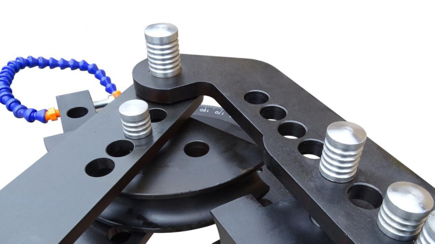 Пристрій також обладнаний колесами, що робить його мобільним та дозволяє легко переміщати верстат у потрібне місце. Для точного контролю кута вигину до 240° використовується шкала з індикатором.