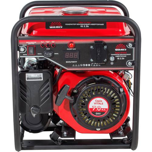 Бензиновий інверторний генератор Vitals IG 2.3b — це сучасний компактний переносний електричний агрегат, призначений для резервного або аварійного живлення побутових споживачів. Він виробляє однофазний змінний струм з правильною (чистою) синусоїдою напругою 230 В, частотою 50 Гц.