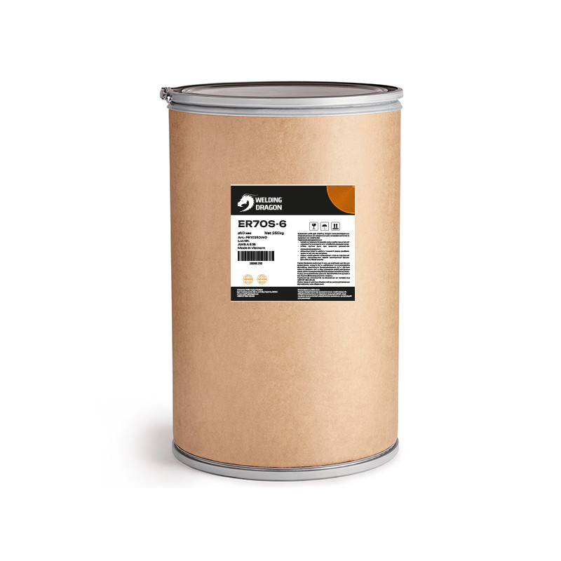 Дріт Welding Dragon ER70S-6 в бочках для автоматичного зварювання. Така упаковка оптимальне рішення для того, щоб економити час на заміну дроту і досягати за рахунок цього максимальної ефективності роботи. Дріт ER70S-6 відповідає стандартам: AWS A5.17 ER70S-6; DIN 8559 SG2; EN 13479 ISO 143341 G3Si1; ГОСТ 2246 СВ08ГС Для використання такого типу упаковки потрібен багаторазового використання з кабель-каналом. Область застосування - напівавтоматичне та автоматичне зварювання сталей (низьковуглецевих і низьколегованих) в газовій суміші (аргон і вуглекислий газ) або в чистому вуглекислому газі. Переваги: - діаметр дроту постійний по всій довжині, що забезпечує безперешкодний рух по напрямних спіралях - стабільність підведення струму гарантується равновесностью дроту і мідним покриттям високої якості - оптимальні хімічні параметри, а також мінімальний вміст домішок сірки і фосфору служать гарантією стабільного горіння дуги і мінімального розбризкування в процесі зварювання