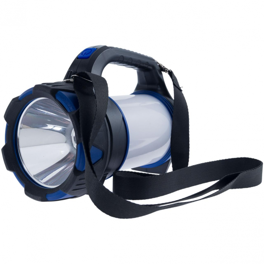 Потужний та яскравий світлодіод 10 Вт LED забезпечує велику продуктивність світла 1000лм та відстань променя – 480м, 80 SMD світлодіодів забезпечують роботу ліхтаря в режимі світильника з білим та 24SMD червоним світлом. Ліхтар можна використовувати в 7-и режимах освітлення: фронтальний білий пошуковий промінь макс., пошуковий промінь мінім., миготливий, світильник заливаючого білого світла макс., світильник мінім., тилове червоне світло, червоне світло миготливе, для передачі сигналу тривоги іншим. Завдяки зручній конструкції ліхтар можна встановити на поверхні чи переносити під час прогулянки, або підвісити під час використання за допомогою наявного плечового ремінця. На ручці ліхтаря є вимикач, що відповідає за фронтальне біле світло, а на задні панелі другий вимикач відповідний за світильник білого світла та тилове червоне світло. Для вимкнення ліхтаря не потрібно поступово перемикати всі режими, достатньо понад 2 секунди утримати відповідну кнопку вимикача.