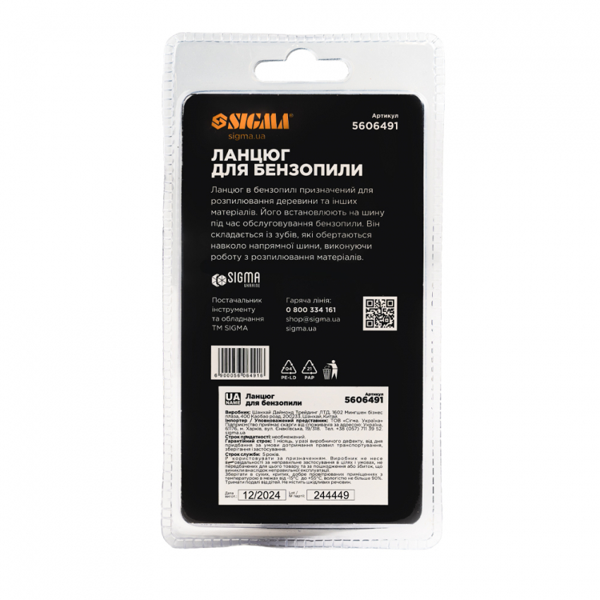 Ланцюг для бензопили 45см крок ланцюга 0.325 паз 1.5мм 72DL чизель SIGMA (5606491) призначений для різання твердої деревини та інших матеріалів.