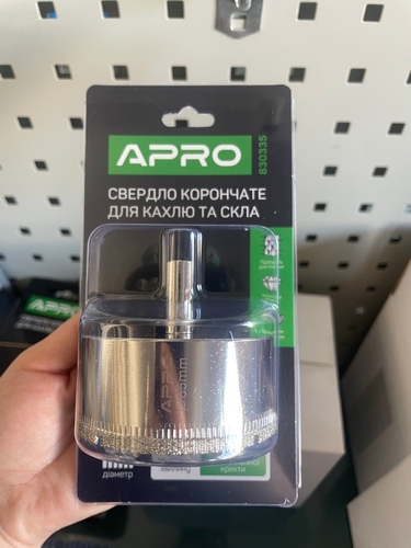 Свердло корончате трубчате с алмазним напиленням для скла і кахлю 65 мм (APRO)
