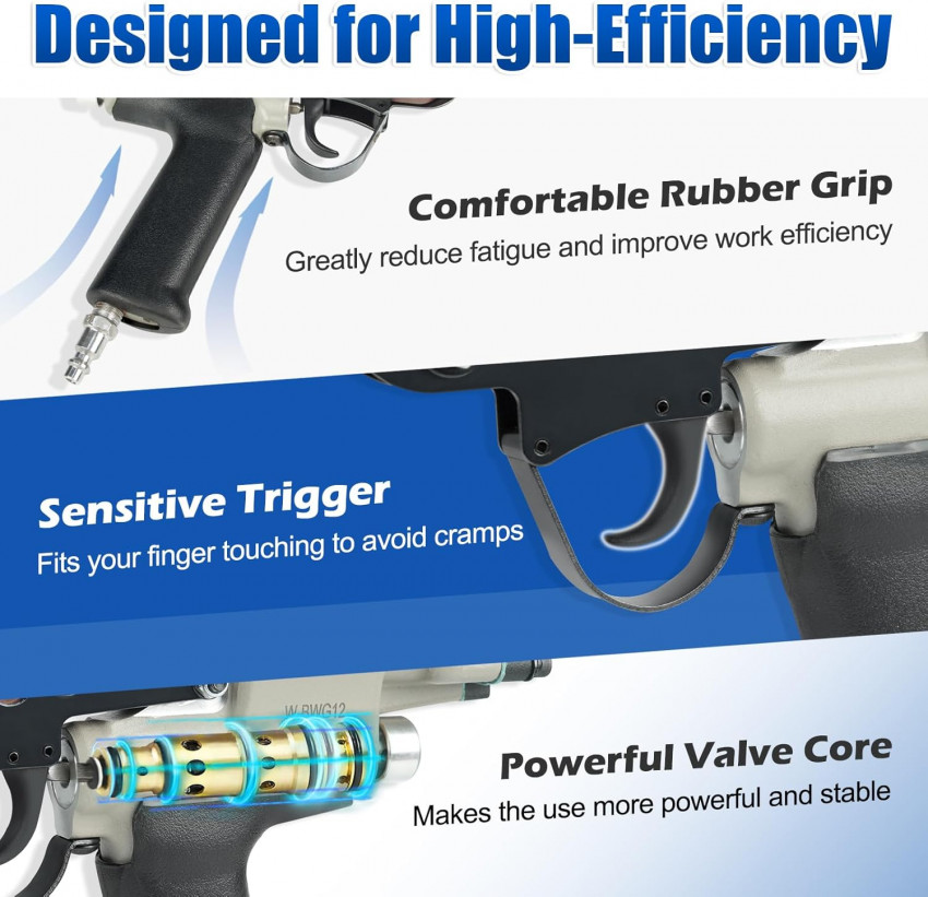 Застосування: пневмопістолет C-Ring BWG12 має закриття скоби від 1,8 мм до 2,1 мм та призначений для з'єднання сіток, огорож, дрібних деталей у виробах ручної роботи та багатьох інших застосувань тощо.