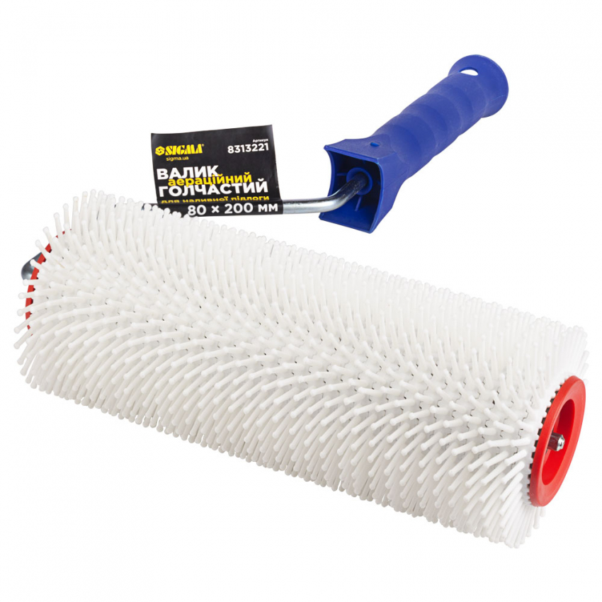 Валик голчастий аераційний для наливної підлоги 80×200мм з ручкою біла голка SIGMA (8313221)