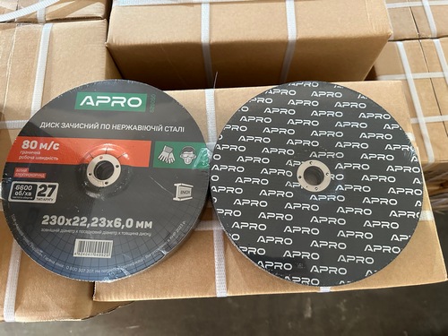 Диск зачисний по нержавіючій сталі (INOX) 230х6.0х22.2мм (5шт. в пач.) APRO
