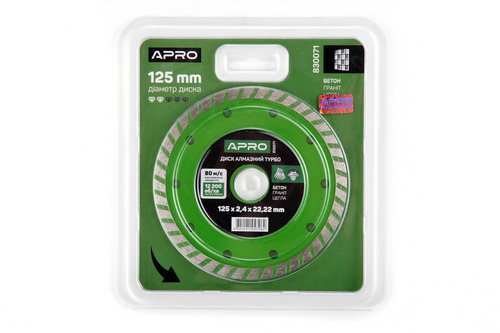 Диск відрізний по бетону 125х2.4х22.22мм (16-18%) Турбо APRO