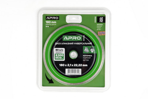 Диск відрізний по бетону 180х2.1х22.22мм (16-18%) Cуцільний APRO