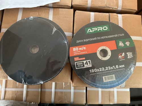 Диск відрізний по нержавіючій сталі (INOX) 180х1.6х22.2мм (5шт. в пач.) APRO