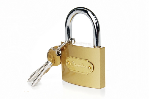 Замок навісний жовтий - (70x54x20мм), хрестоподібний ключ AURORA