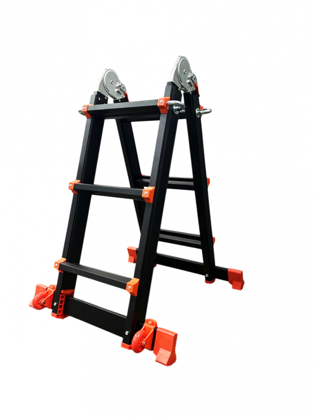 Драбина має універсальну конструкцію,яка дозволяє мінімізувати простір для зберігання та в той самий час оптимізувати різні варіанти використання цієї драбини.