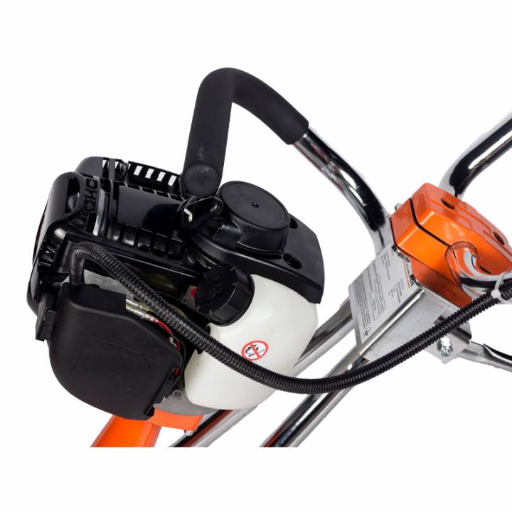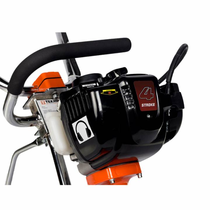 Віброрейка змонтована на базі одноциліндрового 4-тактного бензинового двигуна з повітряним охолодженням та оснащена системою антивібраційного захисту.