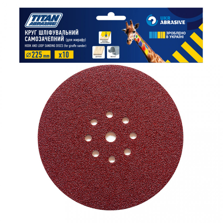 Круг шліфувальний самозачепний ТИТАН АБРАЗИВ Ø 225 мм (10 шт.) Р 36, 9 отворів