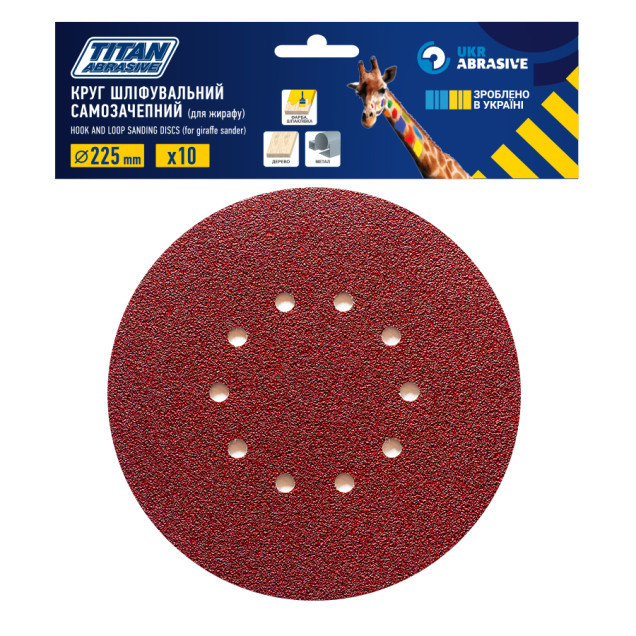 Круг шліфувальний самозачепний ТИТАН АБРАЗИВ Ø 225 мм (10 шт.) Р 220, 10 отворів