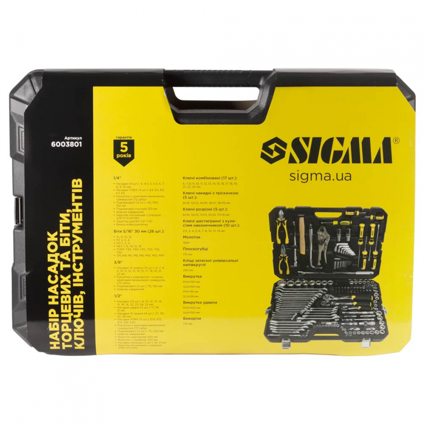 Набір насадок торцевих і біти, ключів, інструментів ¼' ⅜' ½' 148шт CrV SIGMA (6003801)