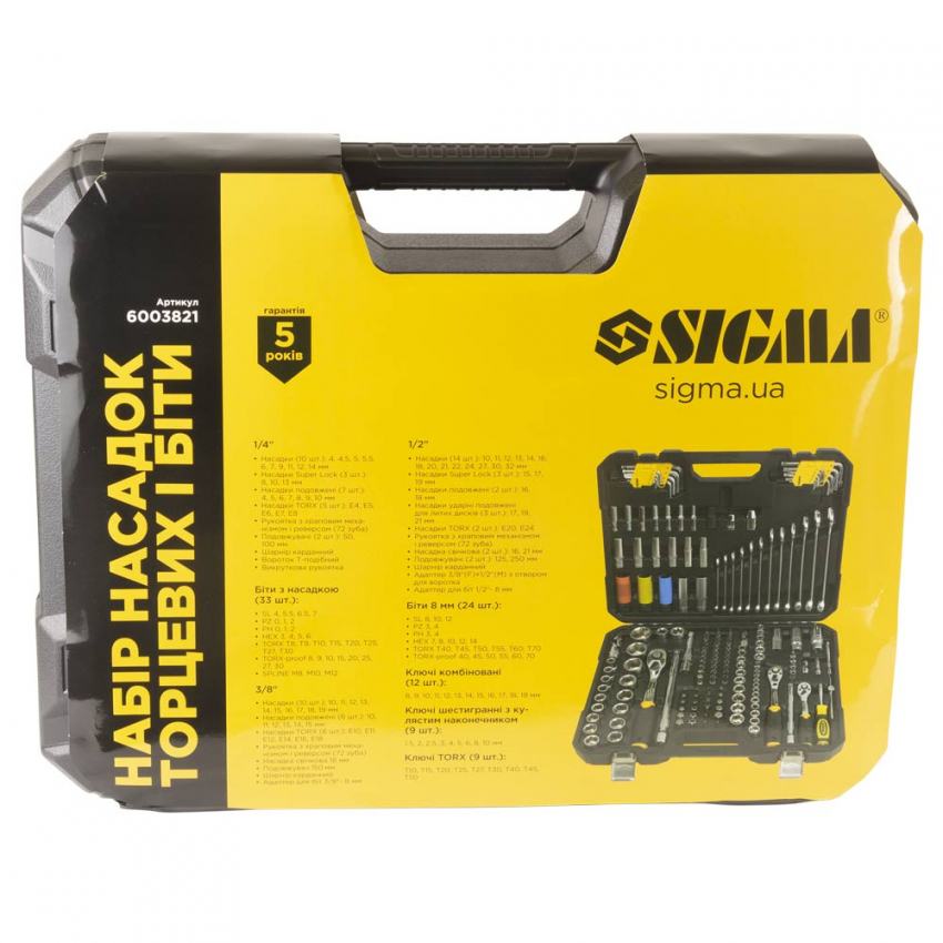 Набір насадок торцевих і біти ¼' ⅜' ½' 176шт CrV SIGMA (6003821)