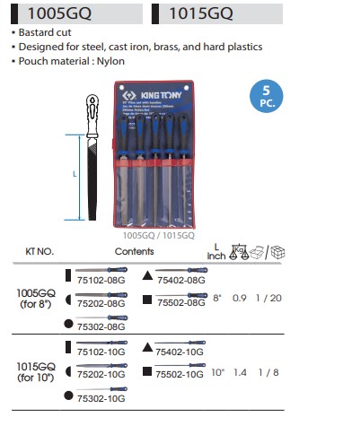 Набір напилків 5 одиниць 200 мм в чохлі KING TONY