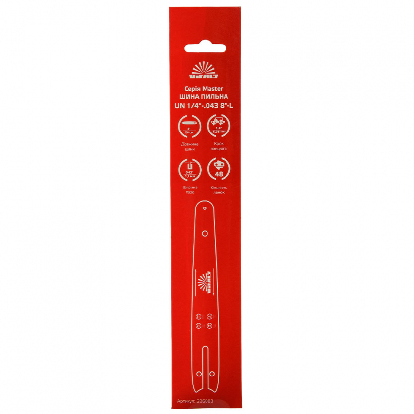 Пильна шина Vitals Master UN 1/4'-.043 8'-L — це високоякісний елемент ланцюгової пилки, який забезпечує стабільну та безпечну роботу інструмента за будь-яких умов. Вона створена з урахуванням потреб як професіоналів, так і вимогливих користувачів, які очікують максимуму від свого обладнання.