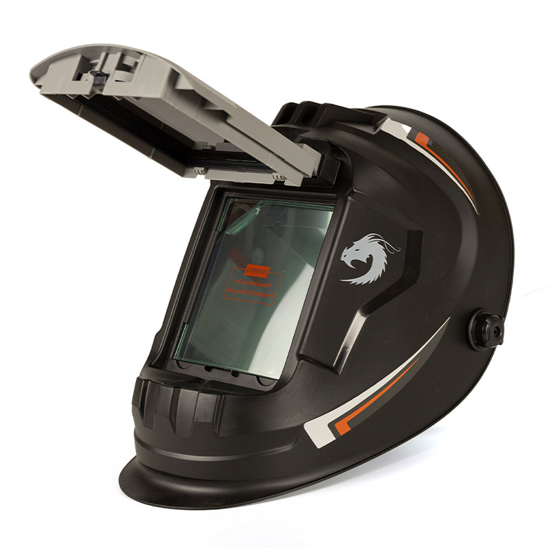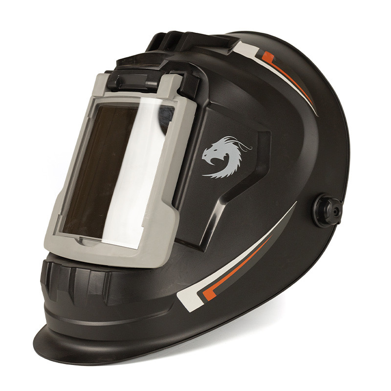 Маска зварювальна Welding Dragon WH-100 Зварювальна маска Welding Dragon WH-100 – маска зварника зі світлофільтром з постійним рівнем затемнення, який розташований на відкидному заборолі. Це дуже зручно під час роботи, коли необхідно перерватись від зварювальних робіт на підготовчі, оглядові або монтаж. Світофільтр просто піднімається уверх і не треба знімати маску при цьому. Маска Welding Dragon WH-100 – повноцінна маска, шолом якої виготовлений з легкого і термостійкого пластику. Значна перевага маски в розмірах оглядового вікна, а саме 105 х 85 мм. В ній комфортно і зручно працювати. Тримається на голові за допомогою оголів’я, яке налаштовується під персональні параметри людини. Також варто зазначити, що зварювальна маска WH-100 зі світлофільтром з постійним рівнем затемнення DIN 11. В цій масці можна працювати в холодну пору року також, так як світлофільтр не має складної електроніки, яка виходить з ладу при температурі нижче +5°C. Маска надійно захищає зварника від ультрафіолетового і інфрачервоного випромінювання та очі від світлового навантаження. Характеристики: розміри світлофільтра: 133 х 114 х 3 мм розміри оглядового вікна: 105 х 85 мм рівень затемнення: DIN 11, постійний вага: 0.6 кг