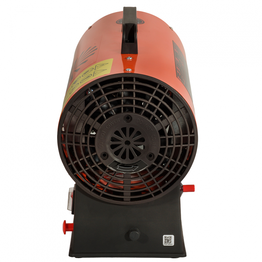 Корпус із міцного металу з антикорозійним покриттям витримує інтенсивну експлуатацію. Компактні габарити 371×185×318 мм (в упаковці) та маса 3,8 кг (без балона) забезпечують легке транспортування. Руків’я, стійкі опори, бокс для акумулятора, захисні решітки на всіх отворах. Працює в режимі S3 (до 60 хвилин) за температури –5…+40°C. У комплекті: обігрівач, газовий рукав із редуктором, інструкція, паковання.