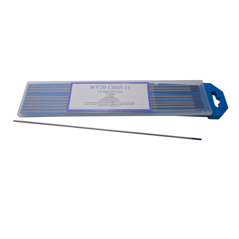 Вольфрамовий електрод WY-20 Невід'ємна частина процесу аргонодугового зварювання – вольфрамовий електрод, який встановлений усередині зварювального пальника та служить для генерації зварювальної дуги. Вольфрамові електроди за загальною класифікацією відносяться до металевих неплавких електродів, оскільки основна їх складова тугоплавкий метал вольфрам (температура плавлення близько 3400°C), відмінність в характеристиках досягається введенням до складу електрода легуючих елементів (оксиди лантану, ітрію та інших рідкісноземельних металів). Для зручності зварника неробочий кінець електрода промаркований певним кольором залежно від складу, щоб не плутати у процесі роботи. Так електроди WY-20 марковані темно-синім кольором та леговані оксидом ітрію (1.8 – 2.2%). Особливості: для роботи на постійному (DC) струмі прямої полярності знижений рівень нагрівання при постійній щільності струму стійке заточення при високих значеннях робочого струму підійдуть для зварювання нержавіючих сталей, титану, нікелю та міді. Відповідність стандартам: ISO 6846 – WY-20 AVS A.5.12 – EWYt-2 EN ISO 6848:2015 – ЕВІ-1 Довжина електрода – 175 мм, упаковка – пластиковий пенал, в упаковці 10 шт., країна-виробник – Китай. Зверніть увагу – ціна вказана за 1 шт. і в залежності від діаметру електроду може відрізнятися. Перед тим, як натиснути кнопку купити, оберіть отрібний діаметр електрода у списку різновидів.