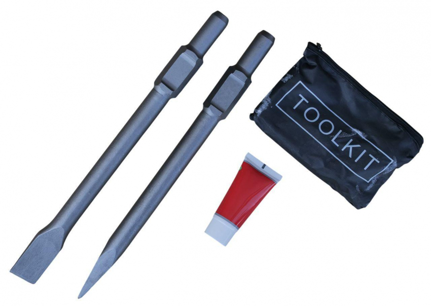 Поставляється з 2 змінними насадками - зубилом для руйнування бетону та цегляної кладки і пікою для розколювання каміння та асфальту. Дві прогумовані ергономічні ручки забезпечують надійний контроль над інструментом і мінімізують вібрацію, що зменшує втому рук. Завдяки компактному дизайну такий відбійний молоток бензиновий зручний у транспортуванні та зберіганні.