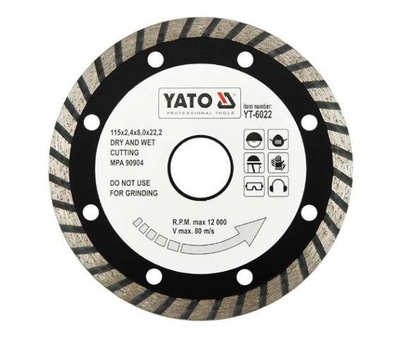 Диск відрізний алмазний YATO "TURBO", 115x2,4x8,0x22,2мм [20/200], шт