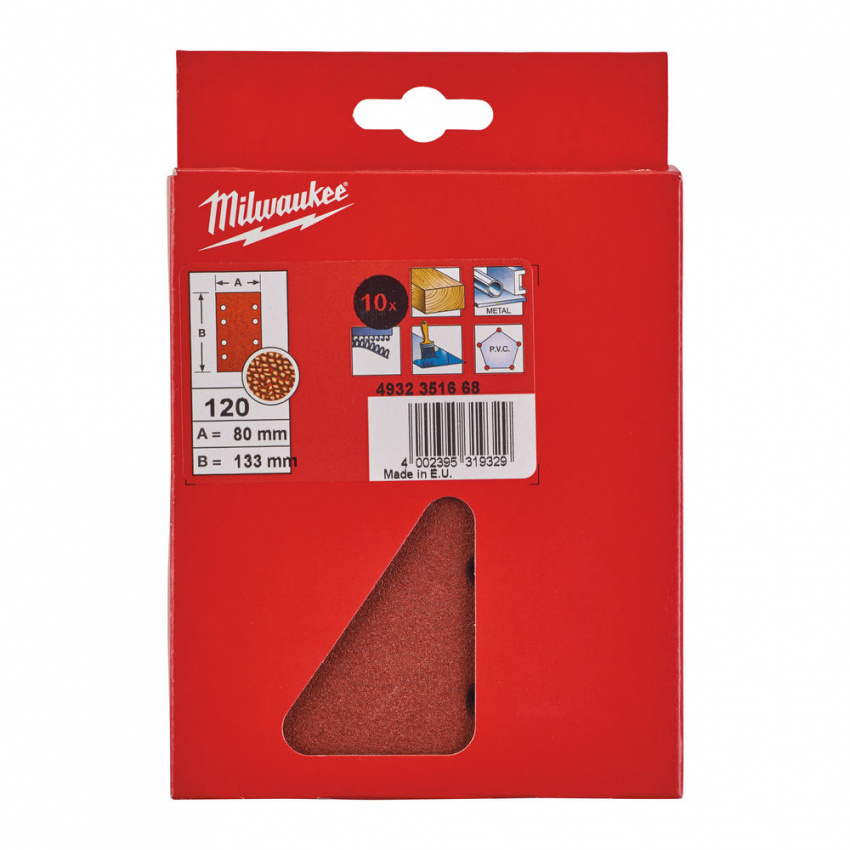 Лист шліфувальний MILWAUKEE, 80x133мм, зерно 120, (10шт), (заміна на 4932492765)