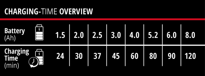 Універсальна сумісність з усіма акумуляторами Power X-Change Одночасне заряджання 2 акумуляторів 18 В Короткий час заряджання завдяки технології швидкої зарядки 4 А Постійний моніторинг акумулятора для оптимального заряджання Реактивація глибоко розряджених акумуляторів за допомогою режиму відновлення Найвищий рівень безпеки завдяки інтелектуальному управлінню зарядкою Поточна інформація на 6-режимному світлодіодному дисплеї стану акумулятора Зручне настінне кріплення завдяки вбудованим петлям для підвішування За допомогою подвійного зарядного пристрою Einhell Power X-Change Twincharger 4A можна швидко і одночасно заряджати два акумулятори Power X-Change. Усі акумулятори сімейства можна використовувати з усіма іншими пристроями Power X-Change. Зарядні пристрої сімейства можна універсально використовувати для всіх акумуляторів. Одночасне заряджання обох акумуляторів економить місце та забезпечує високу доступність для безперебійної роботи, особливо для пристроїв, що використовують технологію Twin-Pack (2x18 В). Технологія швидкого заряджання скорочує час заряджання приблизно на 25%, а інтелектуальне керування заряджанням постійно контролює акумулятори та забезпечує оптимально безпечне заряджання. Режим Refresh дозволяє реактивувати глибоко розряджені акумулятори. Вбудовані петлі для підвішування дозволяють легко монтувати їх на стіну. Вся поточна інформація про заряджання та стан акумулятора надається за допомогою 6-світлодіодного індикатора стану.