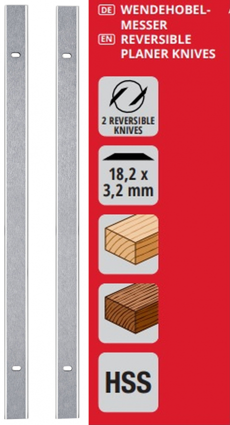 Оригінальні двосторонні ножі для рубанка Einhell Підходять для стаціонарного рубанка Einhell TE-SP 330 Довжина: 332 мм Виготовлені з швидкорізальної сталі В комплекті 2 ножа Ці оригінальні двосторонні ножі для рубанка Einhell є сумісним аксесуаром або запасною частиною для стаціонарних рубанків Einhell. Два ножа для рубанка особливо підходять для стаціонарного рубанка Einhell TE-SP 330. Обидві сторони кожного ножа мають гостру ріжучу кромку, що дозволяє використовувати обидві сторони двосторонніх ножів та забезпечує гладкі поверхні та ідеальне стругане покриття. Виготовлені з високоякісної швидкорізальної сталі, ножі для рубанка довжиною 332 мм також підходять для ширших заготовок та забезпечують тривалий термін служби. У комплекті два двосторонні ножа для рубанка, що можуть заточуватися, для стаціонарного рубанка Einhell TE-SP 330.