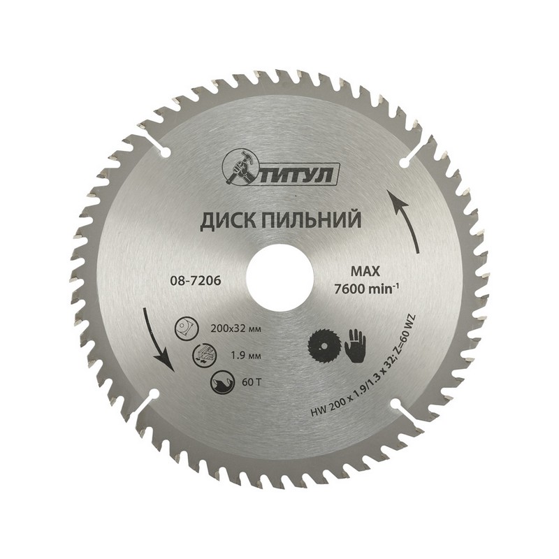 Диск пильний для дерева ТИТУЛ із твердосплавними напайками 200х32х60Т адаптер 32-30/32-25.4 08-7206