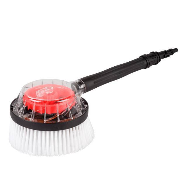 Щітка-насадка – універсальний інструмент для очищення будь-яких поверхонь від бруду, пилу та інших забруднень. За її допомогою ви легко очистите свій автомобіль, садові меблі, помиєте вікна тощо. Завдяки обертальним рухам та довгому гнучкому ворсу дозволяє більш ретельно очищувати забруднення, порівняно зі звичайною насадкою.