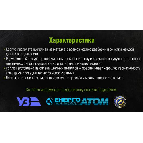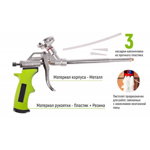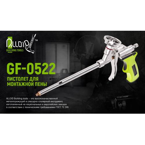 <p><strong>Пістолет для монтажної піни Alloid GF-0522</strong></p><p>Пістолет для монтажної піни Alloid GF-0522 це пістолет, що відноситься до інструменту класичної конструкції для професіоналів. Особливістю GF-0522 є м'яка і зручна в роботі прогумована ручка. Рукоятка стійка до впливу розчинників і бензину, легко очищається і має ергономічну форму.</p><p>На торці рукоятки пістолета для монтажної піни GF-0522 знаходиться спеціальний клапан для швидкого й точного регулювання інтенсивності подачі піни. Металевий корпус виконаний з надійного сплаву і має запас міцності. Наконечник посилений вставкою з латунного сплаву і надійно захищений від корозії.</p><p>Економте разом з пістолетом для піни Alloid GF-0522!</p><p>Купуйте відразу, БЕЗ затримок, з доставкою в будь-яку точку вже зараз і за вигідною ціною в нашому інтернет магазині інструменту і автотюнінгу.</p><p style='font-variant-ligatures: normal;font-variant-caps: normal;orphans: 2;text-align:start;widows: 2;-webkit-text-stroke-width: 0px;text-decoration-style: initial;text-decoration-color: initial;word-spacing:0px'><o:p></o:p></p><p> </p>