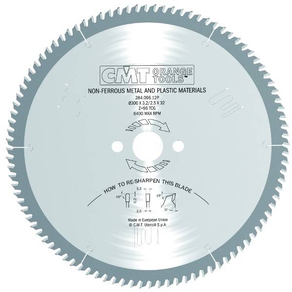 Пили для кольорових металів компанії CMT ідеальні для роботи на промисловому обладнанні. Основними особливостями даної серії пил є висока ударна в'язкість зубів зі спеціального сплаву, мала висота зубів для більш надійного кріплення. Спеціальна конструкція пазух для ефективного видалення стружки. Позитивний кут врізання для контрольованого пиляння та акуратного різу без залому і застрягання тонких деталей. ЗАСТОСУВАННЯ: Для різання труб, довгомірних предметів і блоків. ОБЛАДНАННЯ: Настільні пили з автоматичною подачею матеріалу. МАТЕРІАЛ: Алюміній, латунь та інші сплави міді, пластик, композитні матеріали. УВАГА: Перед початком розпилу слід переконатись, що матеріал міцно закріплений. Рекомендовано використання рідкого лубриканту. Не рекомендовано використання восковмісного лубриканту.