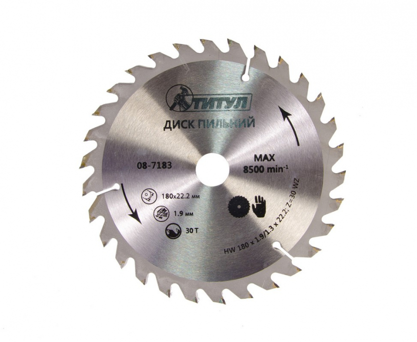 Диск пильний для дерева ТИТУЛ із твердосплавними напайками 180х22.2х30Т адаптер 22.2-20 08-7183